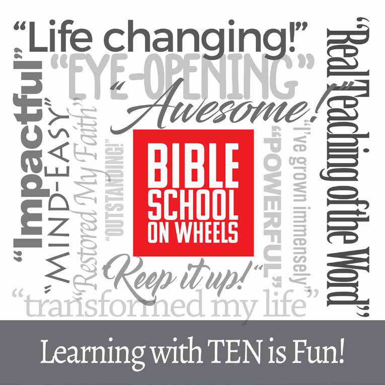 Lifestyle Ministries is an accredited Teach Every Nation (TEN) campus, offering the dynamic Bible School On Wheels developed by Dr. Bruce Wilkinson. This DVD-based program, paired with a practical workbook, provides life-changing, relevant Bible teaching. The school currently runs a 2-year curriculum and continues to grow as new modules are introduced. As part of a global initiative, TEN is equipping believers across the world — and you can be part of it right here.